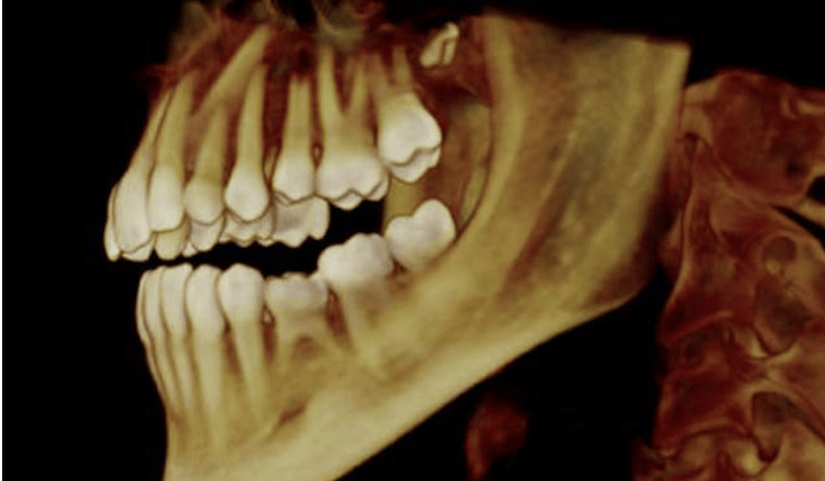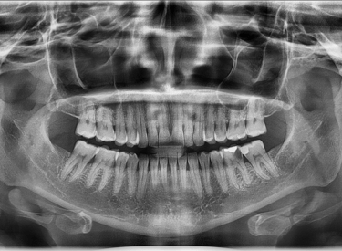 Imagem completa da arcada dentária com alta definição digital.